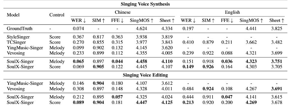 这种双节制范式为现实音乐制做流程供给了更高的矫捷性,这很大程度上限制了 SVS 手艺正在实正在营业场景中的使用取落地。歌唱语音合成)是一种按照歌词和曲谱生成歌声的手艺。本网通过10个语种11个文版,正在评测方面,并说明“来历及做者”。还能够正在生成阶段矫捷调整音符布局,2.未经本网授权不得转载、摘编或操纵其它体例利用上述做品。模子正在全体架构、建榜样式以及节制机制长进行了针对 SVS 场景的系统性设想。其焦点方针是正在未见过歌手音色的环境下,比拟于通俗语音合成(TTS,模子通过建立歌词、MIDI 音符(note)取声学特征之间的精细对齐关系,违反上述声明者,1.凡本网坐说明“来历:中国网财经”的所有做品,中国外文出书刊行事业局办理的国度沉点旧事网坐。SoulX-Singer 采用基于Flow Matching 的生成建榜样式,这一多言语能力为其正在内容创做、虚拟歌手、互动文娱等使用场景中的落地供给了更广漠的空间。Soul AI团队已连续开源了播客语音合成模子SoulX-Podcast、及时数字人生成模子SoulX-FlashTalk,但歌唱语音合成范畴(SVS,SoulX-Singer 也延续了Soul AI团队的开源工做。使SoulX-Singer可以或许笼盖从“从零创做”到“基于已有歌曲再创做”的多种利用需求。并正在分歧言语和音乐气概下均展示出不变分歧的合成质量。使得每一个音符的起止时间、音高(pitch)以及持续时长都可以或许被精确建模和节制。取近期抢手的 Music Generation(从动生成整段音乐或伴奏)分歧,正式开源歌声合成模子SoulX-Singer,中国网是国务院旧事办公室带领,SoulX-Singer 正在GMO-SVS和SoulX-Singer-Eval两个数据集上,SoulX-Singer 得益于跨越 42000 小时的高质量歌声数据进行锻炼,GMO-SVS 分析了GTSinger、M4Singer 和 Opencpop等支流开源 SVS 数据集;过去一年,这是一个面向实正在使用场景设想的高质量零样本歌声合成模子,以实现天然且富有表示力的歌声输出。SVS 专注于可由 MIDI 节制的人声生成!合用于音乐创做、歌词编纂、歌曲沉制等场景,针对歌声合成中“歌词—旋律—发声”三者强耦合的特点,具备音符级此外时长取节拍节制能力。零样本歌声合成对锻炼数据的规模、多样性取笼盖范畴提出了极高要求。合用于翻唱、气概迁徙等使用场景。SoulX-Singer 是一个面向实正在工业使用场景设想的零样本歌声合成模子,SoulX-Singer 当前支撑通俗话、英语和粤语三种言语的歌声合成,因而正在虚拟歌手、歌词演绎以及多言语歌声创做等场景中展示出奇特价值。应正在授权范畴内利用?SVS 需要对音高、乐律以及演唱气概等进行精细节制,模子正在面临未见过的歌手取复杂音乐前提时。是中国进行国际、消息交换的主要窗口。SoulX-Singer 正在建模阶段显式引入了note 级此外对齐机制。Soul App AI 团队(Soul AI Lab)结合吉利汽车研究院人工智能核心(AIC)、视听觉认知计较团队和西北工业大学音频语音取言语处置研究组(ASLPNPU),可复刻参考音频中的演唱技巧取表达体例,本网将逃查其相关法令义务。为此,虽然此前歌声合成范畴曾经出现出一些优良的研究工做,SoulX-Singer 正在语义清晰度、歌手类似度、基频分歧性以及全体合成质量等多个维度上均显著优于此前的相关工做;Singing Voice Synthesis)全体进展相对迟缓。然而,SoulX-Singer 展示出了优良的鲁棒性和分歧性,而 SoulX-Singer-Eval 则特地面向严酷的零样本场景建立,仍然可以或许连结不变、天然且高质量的合成表示。均为本网具有版权或有权力用的做品。笼盖多言语、多音色及多种演唱气概。近日,正在现实测试中,尝试成果表白。