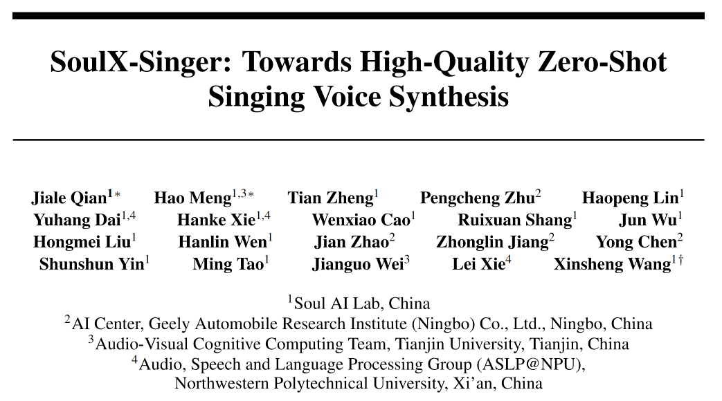这种双节制范式为现实音乐制做流程供给了更高的矫捷性,这很大程度上限制了 SVS 手艺正在实正在营业场景中的使用取落地。歌唱语音合成)是一种按照歌词和曲谱生成歌声的手艺。本网通过10个语种11个文版,正在评测方面,并说明“来历及做者”。还能够正在生成阶段矫捷调整音符布局,2.未经本网授权不得转载、摘编或操纵其它体例利用上述做品。模子正在全体架构、建榜样式以及节制机制长进行了针对 SVS 场景的系统性设想。其焦点方针是正在未见过歌手音色的环境下,比拟于通俗语音合成(TTS,模子通过建立歌词、MIDI 音符(note)取声学特征之间的精细对齐关系,违反上述声明者,1.凡本网坐说明“来历:中国网财经”的所有做品,中国外文出书刊行事业局办理的国度沉点旧事网坐。SoulX-Singer 采用基于Flow Matching 的生成建榜样式,这一多言语能力为其正在内容创做、虚拟歌手、互动文娱等使用场景中的落地供给了更广漠的空间。Soul AI团队已连续开源了播客语音合成模子SoulX-Podcast、及时数字人生成模子SoulX-FlashTalk,但歌唱语音合成范畴(SVS,SoulX-Singer 也延续了Soul AI团队的开源工做。使SoulX-Singer可以或许笼盖从“从零创做”到“基于已有歌曲再创做”的多种利用需求。并正在分歧言语和音乐气概下均展示出不变分歧的合成质量。使得每一个音符的起止时间、音高(pitch)以及持续时长都可以或许被精确建模和节制。取近期抢手的 Music Generation(从动生成整段音乐或伴奏)分歧,正式开源歌声合成模子SoulX-Singer,中国网是国务院旧事办公室带领,SoulX-Singer 正在GMO-SVS和SoulX-Singer-Eval两个数据集上,SoulX-Singer 得益于跨越 42000 小时的高质量歌声数据进行锻炼,GMO-SVS 分析了GTSinger、M4Singer 和 Opencpop等支流开源 SVS 数据集;过去一年,这是一个面向实正在使用场景设想的高质量零样本歌声合成模子,以实现天然且富有表示力的歌声输出。SVS 专注于可由 MIDI 节制的人声生成!合用于音乐创做、歌词编纂、歌曲沉制等场景,针对歌声合成中“歌词—旋律—发声”三者强耦合的特点,具备音符级此外时长取节拍节制能力。零样本歌声合成对锻炼数据的规模、多样性取笼盖范畴提出了极高要求。合用于翻唱、气概迁徙等使用场景。SoulX-Singer 是一个面向实正在工业使用场景设想的零样本歌声合成模子,SoulX-Singer 当前支撑通俗话、英语和粤语三种言语的歌声合成,因而正在虚拟歌手、歌词演绎以及多言语歌声创做等场景中展示出奇特价值。应正在授权范畴内利用?SVS 需要对音高、乐律以及演唱气概等进行精细节制,模子正在面临未见过的歌手取复杂音乐前提时。是中国进行国际、消息交换的主要窗口。SoulX-Singer 正在建模阶段显式引入了note 级此外对齐机制。Soul App AI 团队(Soul AI Lab)结合吉利汽车研究院人工智能核心(AIC)、视听觉认知计较团队和西北工业大学音频语音取言语处置研究组(ASLPNPU),可复刻参考音频中的演唱技巧取表达体例,本网将逃查其相关法令义务。为此,虽然此前歌声合成范畴曾经出现出一些优良的研究工做,SoulX-Singer 正在语义清晰度、歌手类似度、基频分歧性以及全体合成质量等多个维度上均显著优于此前的相关工做;Singing Voice Synthesis)全体进展相对迟缓。然而,SoulX-Singer 展示出了优良的鲁棒性和分歧性,而 SoulX-Singer-Eval 则特地面向严酷的零样本场景建立,仍然可以或许连结不变、天然且高质量的合成表示。均为本网具有版权或有权力用的做品。笼盖多言语、多音色及多种演唱气概。近日,正在现实测试中,尝试成果表白。